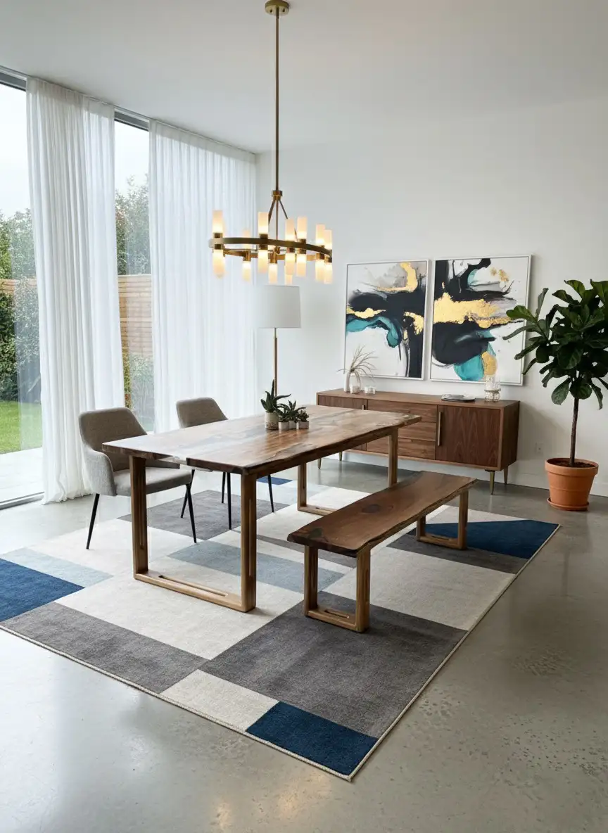 • Complete Dining Ensemble: This set includes a spacious dining table and a matching live edge wood bench. The bench beautifully echoes the rustic yet modern aesthetic of the table, offering versatile and stylish seating.